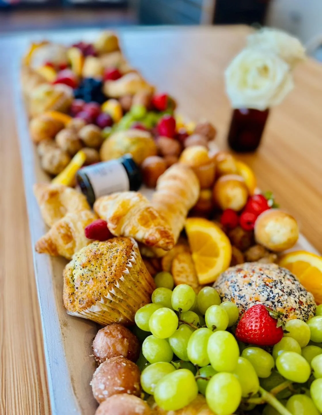 Mini gourmet Cheeseball, salami rose, house made crostini, fruit, and seasonal accouterments in an individual gift box.